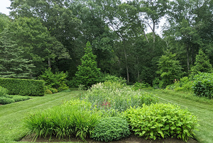 Sakonnet Garden is a hidden exotic garden embedded within a native coastal fields landscape, a long-term project of John Gwynne and Mikel Folcarelli. This ongoing experiment in design, scale, and plantings began as an acre-sized spring woodland garden and is subdivided into spaces separated by high windbreak hedges and stone walls that enable growing of many Zone 7 plants. Each space has its own mood and horticultural objective. These woodland areas are very different in summer-mostly shady and green, but with the "subtropical quadrant" at peak of exuberance. Open for the first time for the Garden Conservancy, a new "pollinator plus" summer garden is a colorful walk-through perennial border conceived as a biodiversity maze. Thousands of flowers produce nectar for butterflies, bees, especially native bees, and other insects important for pollination. Clipped topiary ilex begins to mimic the Nupé house posts from Ghana. Please note that Open Days tickets are not accepted during this Open Day.